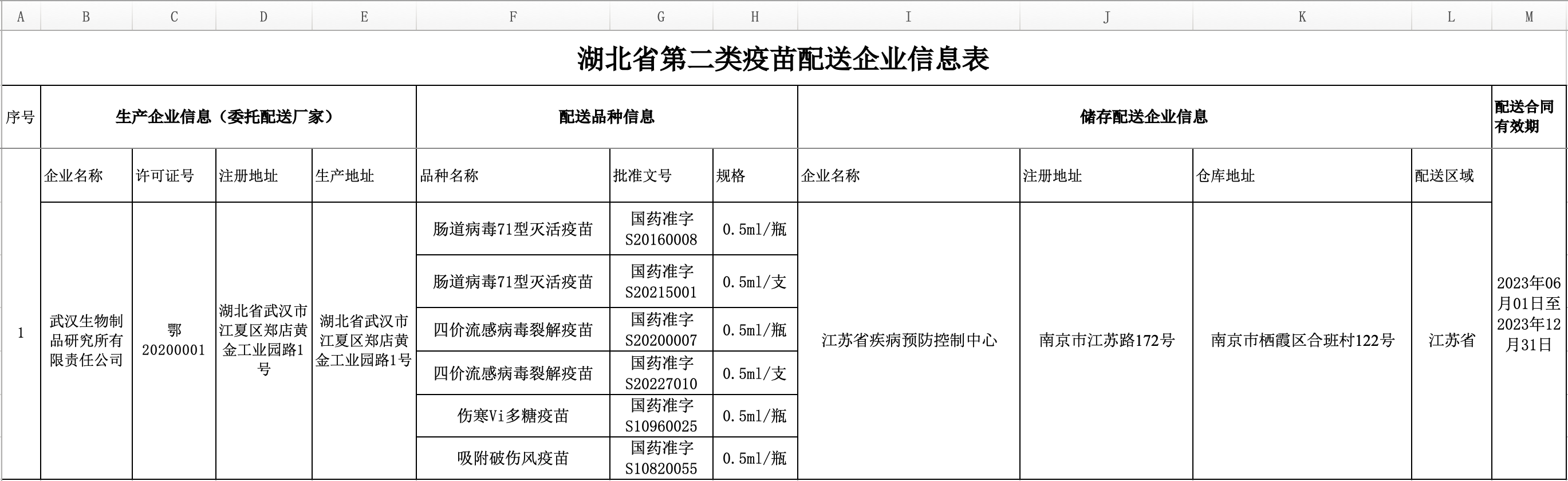 湖北省第二類疫苗配送企業信息(xī)表(biǎo)(羞羞视频在线生物製品研究所有限責任公(gōng)司)